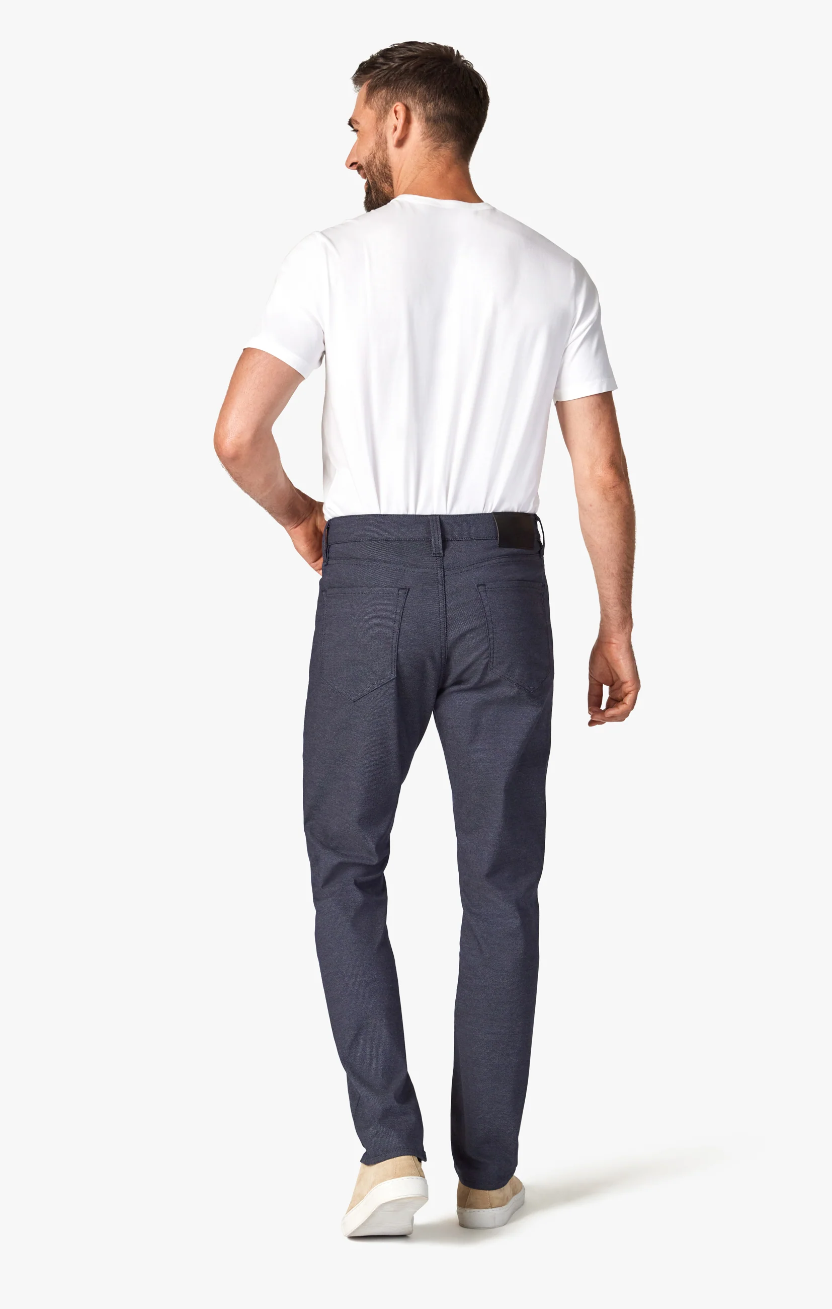 Even the cooler months can’t stop the man on the go, and these sophisticated pants designed with a temperature-regulating fabric and finished in a rich navy wash are made to move with you. Innovative Coolmax fabric is woven into denim for a sweat-wicking effect while looking like a timeless and elegant jean. This pair is designed with a modern mid rise and tapered straight leg that has just the right amount of room for a distinguished fit that easily dresses up or down.