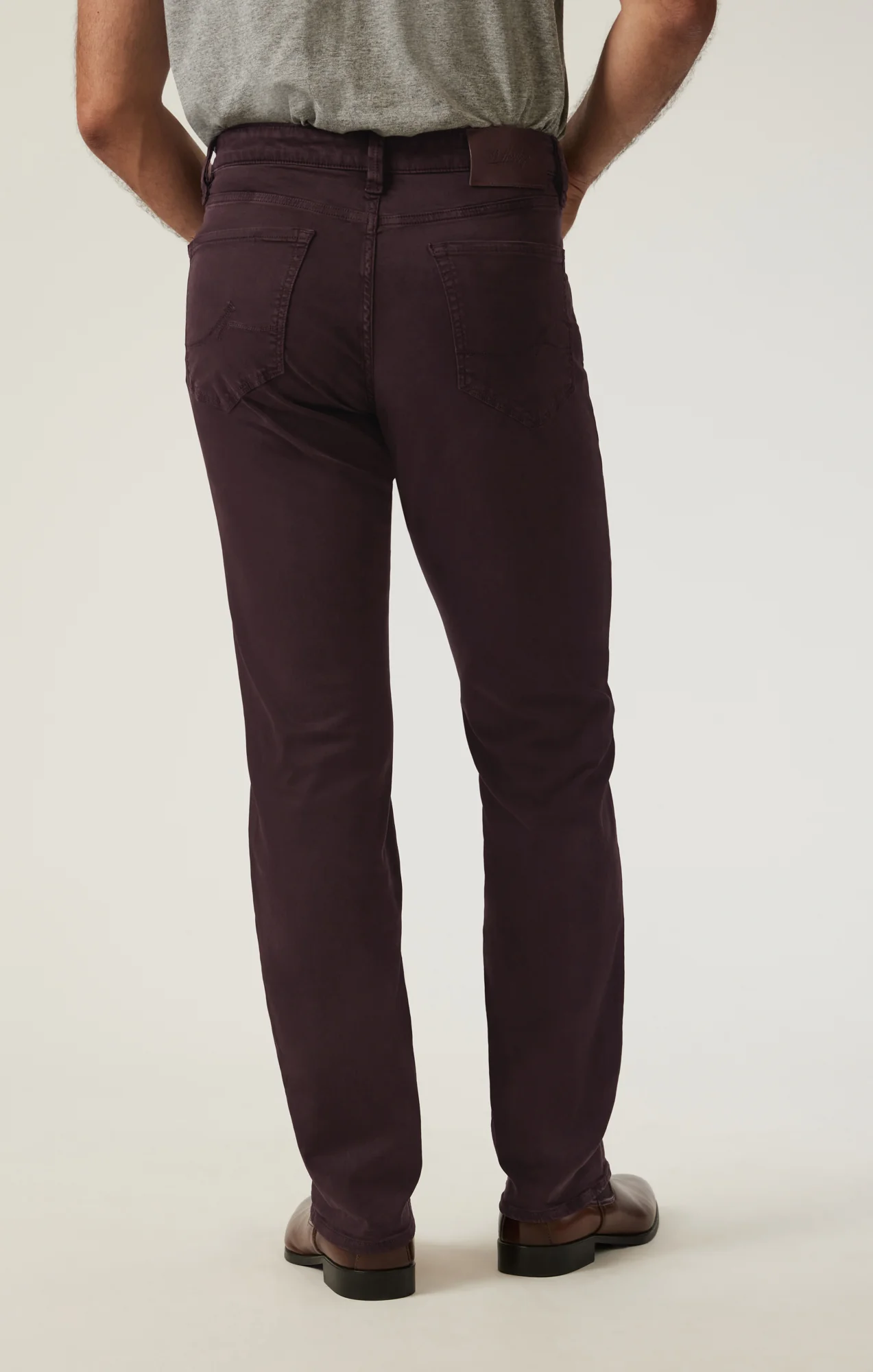Constructed in ultra-soft and smooth twill fabric and finished in a seasonal burgundy hue, this pair is a modern and sophisticated option for everyday wear. Designed with a comfortable rise and a relaxed leg, this pair maintains comfort without sacrificing elegance.