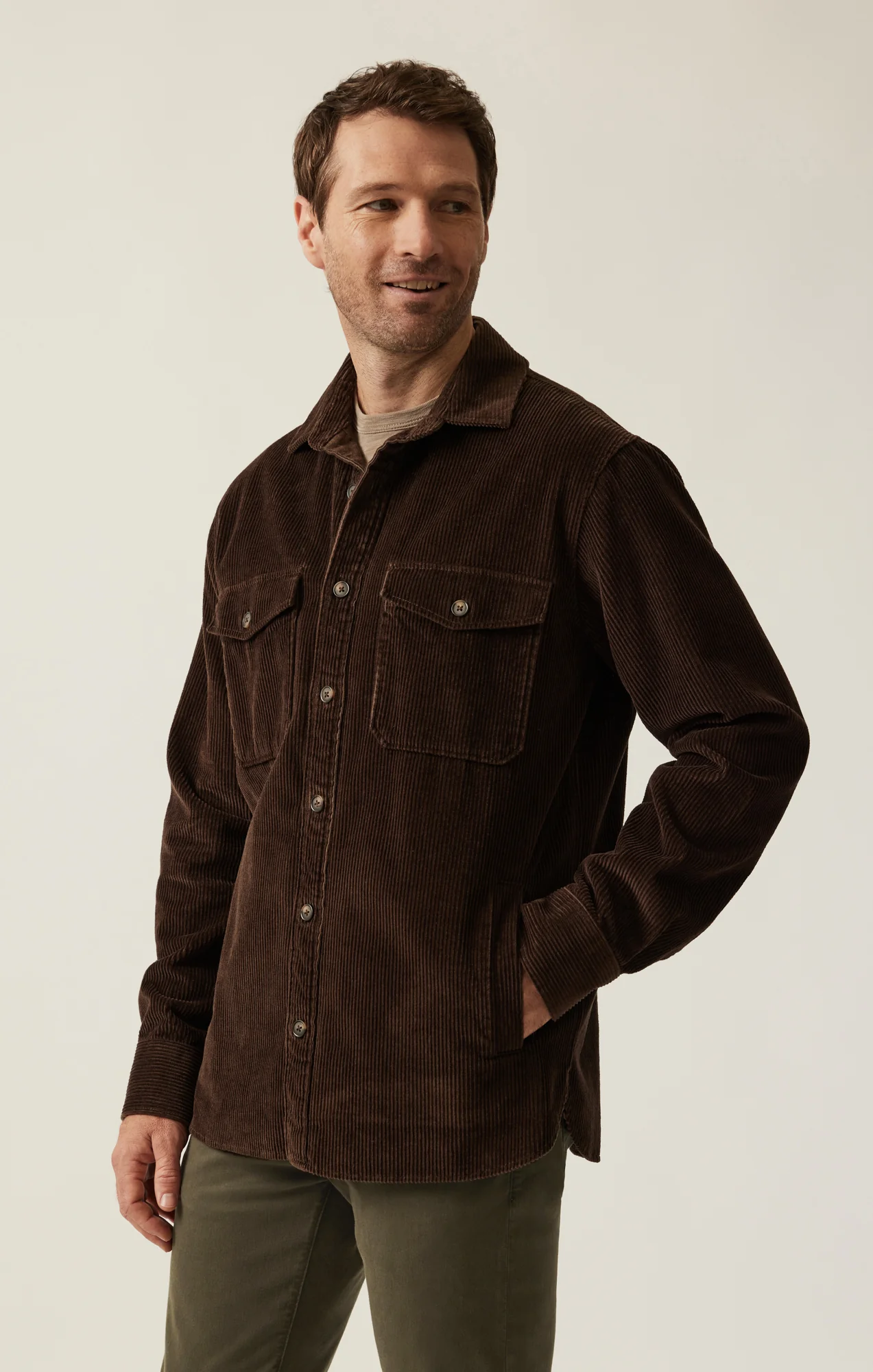 This collared overshirt leaves enough room for layers while maintaining a structured fit. Comfortable corduroy gives this overshirt an ultra soft hand feel, and a chocolate brown hue and tortoiseshell buttons elevate the casual style.